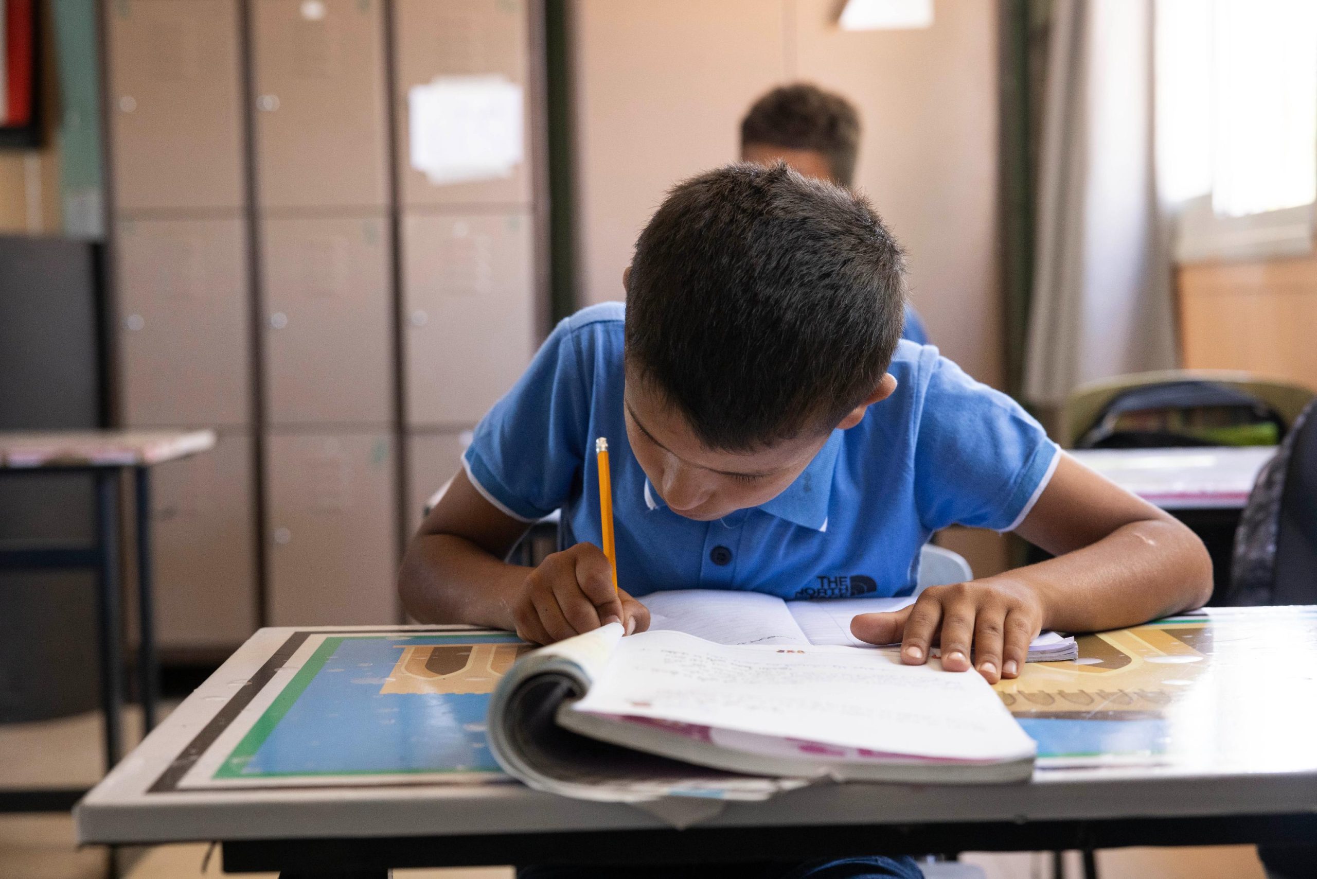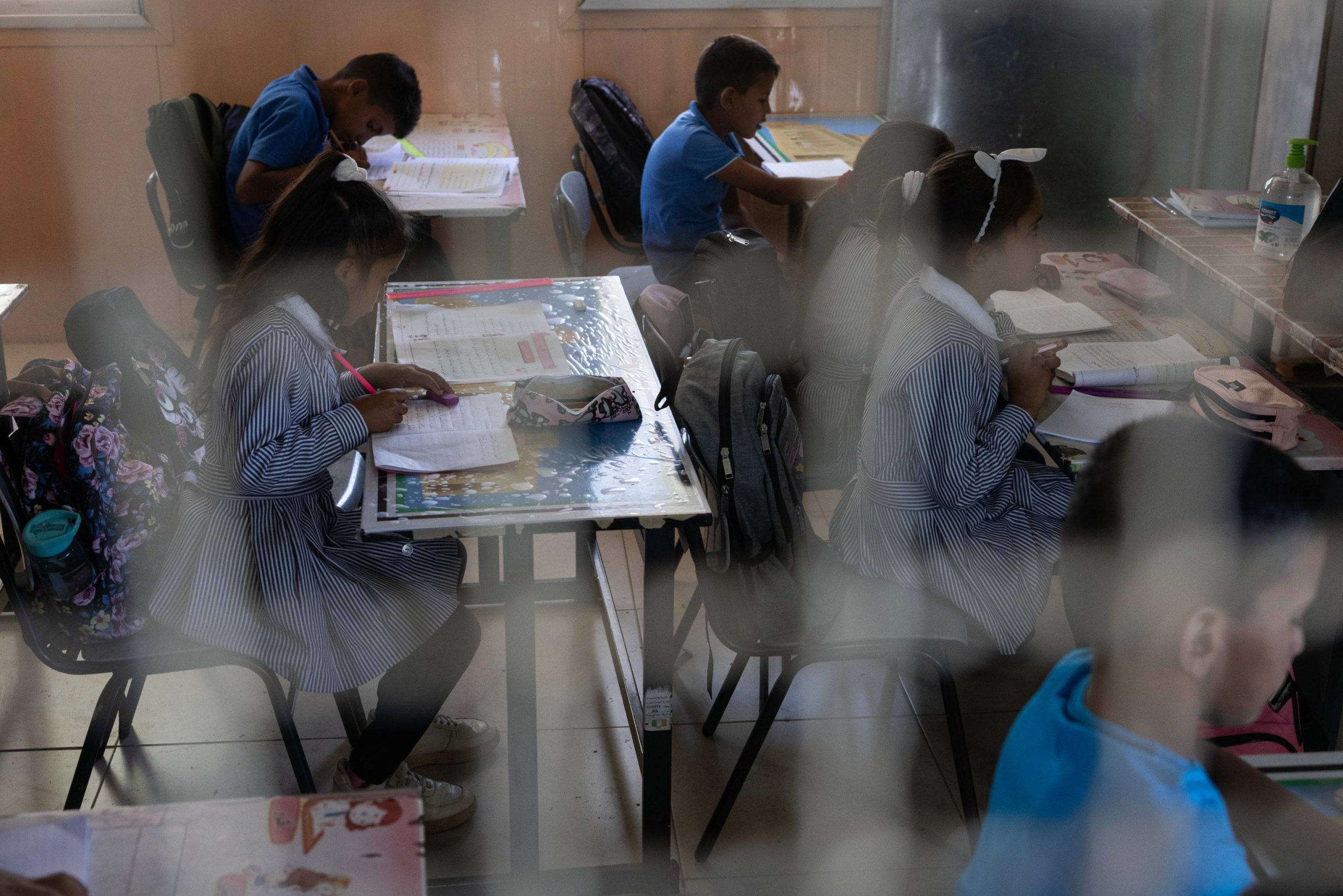 طلاب في المدرسة الممولة من أوروبا في وادي السيق قبل الإخلاء. تصوير: أورين زيف/مجلة +972