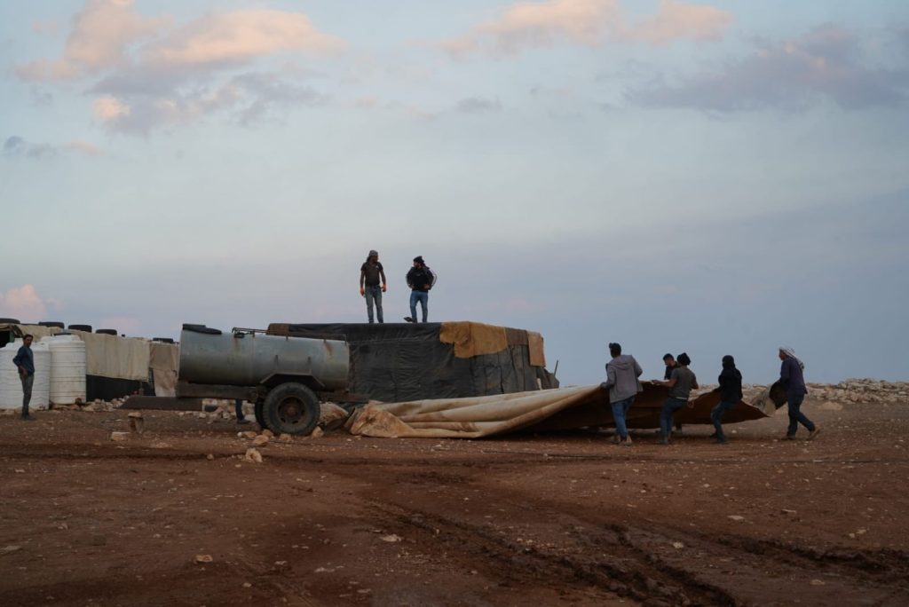 إلا أنّه في شهر شباط/فبراير لعام 2023، اقترب مستوطنون من المجتمع البدويّ، بحسب ما يروي بشار، وهاجموا بعض أفراد المجتمع ملحقين أضراراً بالممتلكات. وبعد السابع من تشرين الأول/أكتوبر، حاصر المستوطنون أنفسهم المكان. يصف أبو بشار الوضع حينها “بالجهنّميّ”. ثم أتى الجنود في 12 تشرين الأول/أكتوبر وأمهلوا المجتمع المحليّ ساعة واحدة للإخلاء. يتذكر أبو بشار حديث الجنود معه وقولهم: “غير مسموح لك بالذهاب إلى منزلك أو بأخذ سيارتك، ليس أمامك سوى أن تأخذ أطفالك ومواشيك وترحل من هنا سيراً على الأقدام”.
