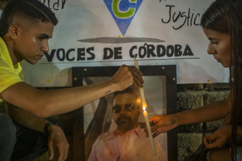 Veillée funèbre en mémoire de Rafael à Puerto Libertador, Córdoba (Colombie), le 26 octobre 2022. (crédit : Diego Cuevas pour El País)