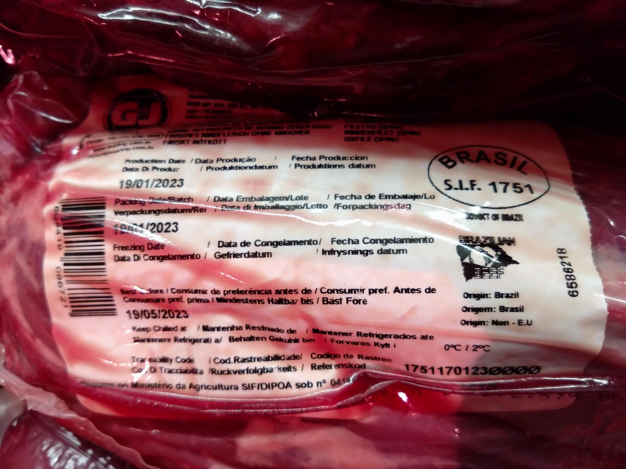 Chez les grossistes néerlandais Makro, Sligro et Hanos, le long d’allées un peu froides, réservées d’habitude à des restaurateurs ou propriétaires d’hôtels du pays, nos partenaires de NRC ont retrouvé des produits réfrigérés ou congelés provenant du même abattoir Marfrig de Tangará da Serra. Sur l’un des morceaux de viande, la date de l’abattage de l’animal : le 19 janvier 2023, le même jour où des animaux de la ferme Estrela Do Sangue de Ronaldo Da Cunha ont aussi été abattus, d’après les données publiques disponibles sur le site de Marfrig. Impossible de prouver qu’il s’agit des mêmes animaux puisque les étiquettes ne donnent pas d’information sur les fermes d’origine.
