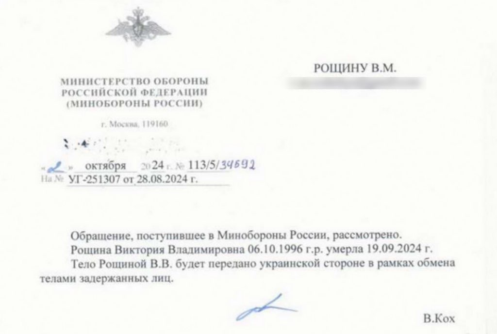 En octobre, Volodymr reçoit un mail du ministère de la défense russe. Dans un langage laconique et protocolaire, la lettre annonce la mort de sa fille en captivité en Russie. La date du décès est précisée : le 19 septembre 2024.